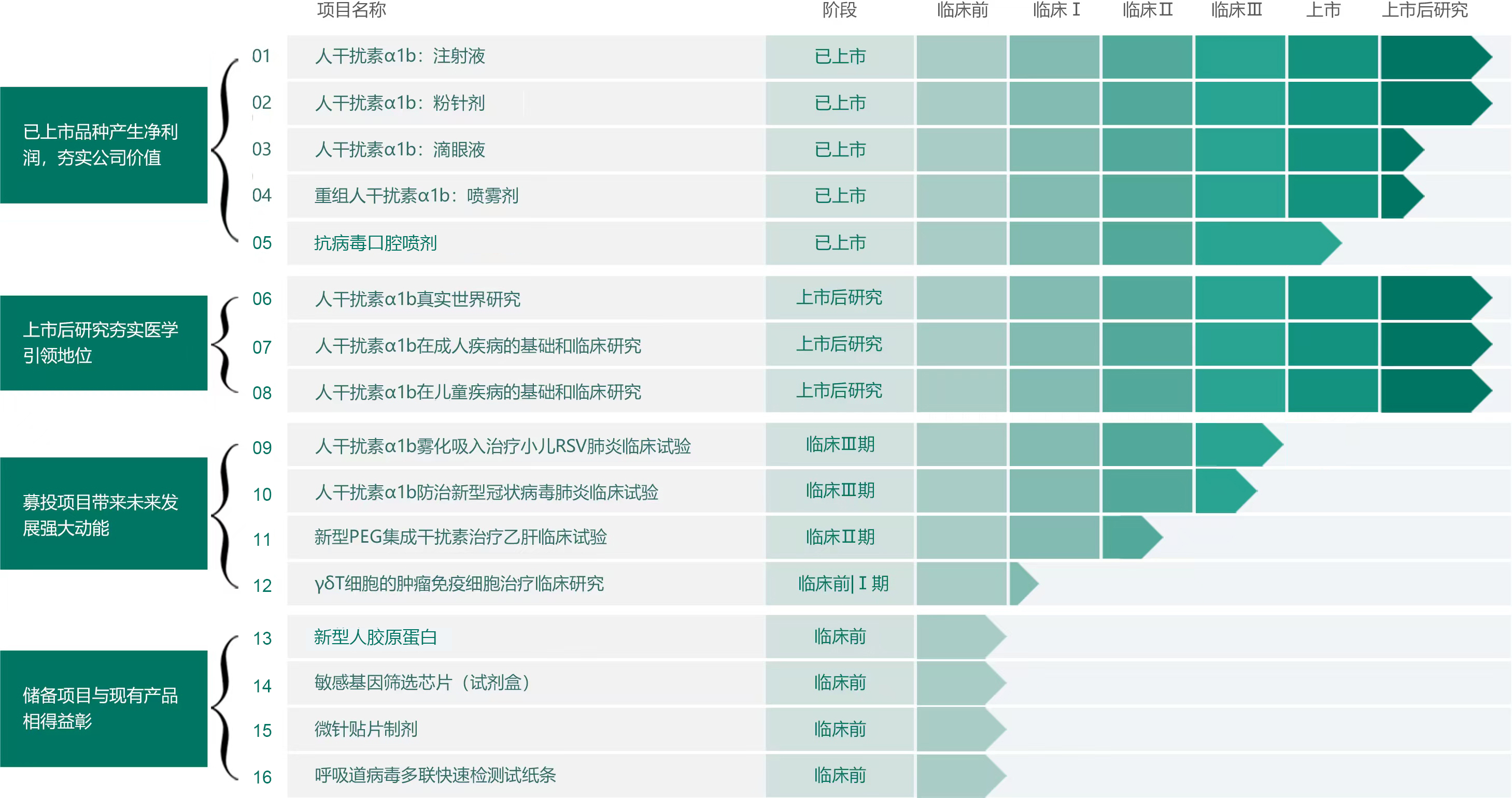 通過大腸桿菌重組蛋白表達(dá)系統(tǒng)的載體優(yōu)化、發(fā)酵工藝優(yōu)化與純化工藝優(yōu)化等技術(shù),在國(guó)內(nèi)率先創(chuàng)新制造出包括人干擾素 α1b、α2a、α2b 等在內(nèi)的多種干擾素亞型,在中國(guó)市場(chǎng)上打破了進(jìn)口干擾素的市場(chǎng)壟斷和價(jià)格高企局面。