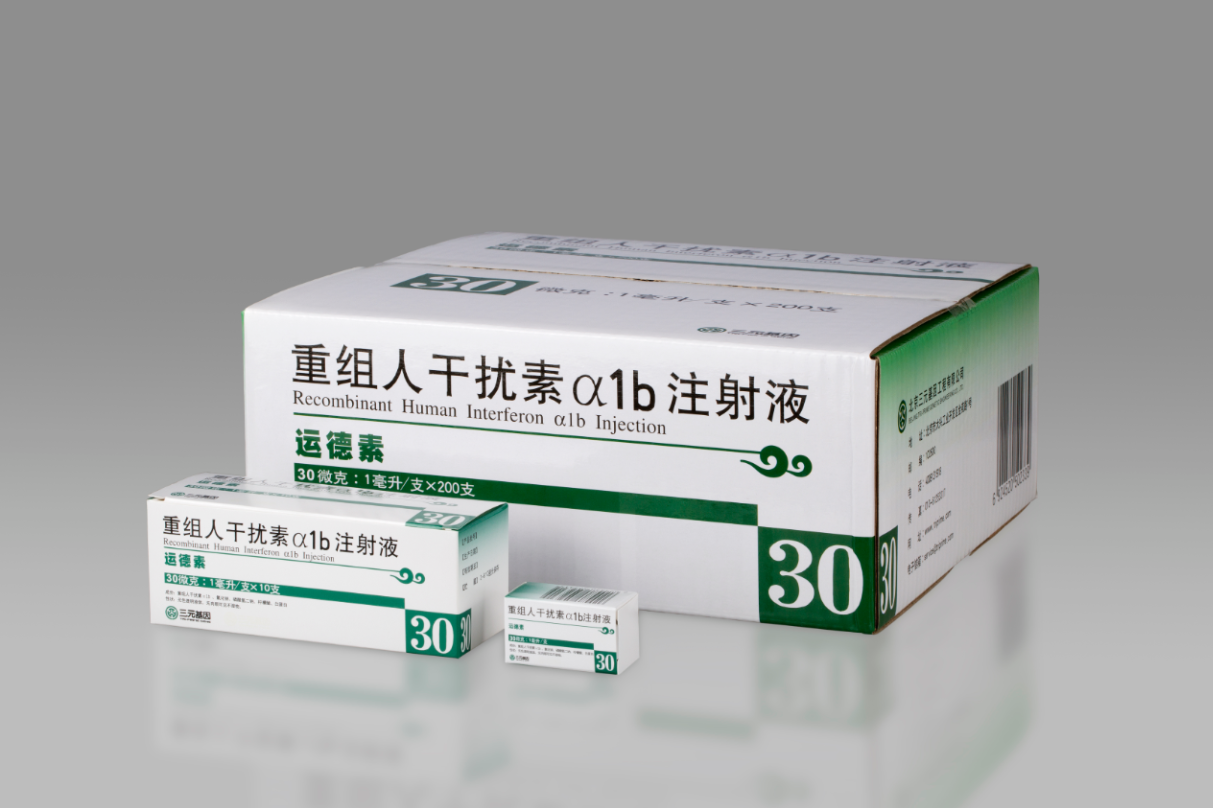 三元基因主要產(chǎn)品重組人干擾素α1b(商品名:運(yùn)德素),是具有自主知識(shí)產(chǎn)權(quán)的基因工程一類新藥,實(shí)現(xiàn)了我國(guó)基因工程藥物從無(wú)到有“零”的突破,目前主要用于治療病毒性肝炎、病毒性肺炎、帶狀皰疹、慢性粒細(xì)胞白血病和黑色素瘤等多種病毒性疾病和惡性腫瘤。