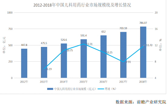 我國兒童用藥市場,不論是在規(guī)模上,還是在增速上,都較為可觀。數(shù)據(jù)顯示,2018年,我國兒科用藥市場規(guī)模達(dá)到786億元,同比增長11.72%,據(jù)預(yù)計2020年市場規(guī)模在千億元以上。
