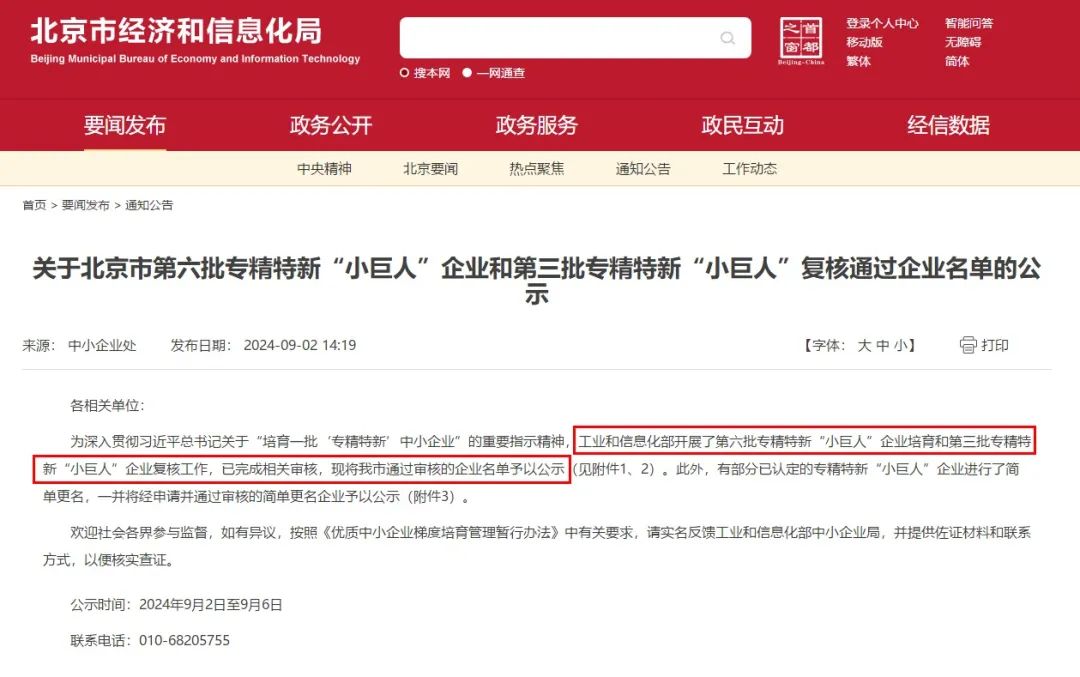 (北京市經(jīng)信局公示工信部第六批專(zhuān)精特新“小巨人”企業(yè)和第三批專(zhuān)精特新“小巨人”復(fù)核通過(guò)企業(yè)名單,三元基因入選)