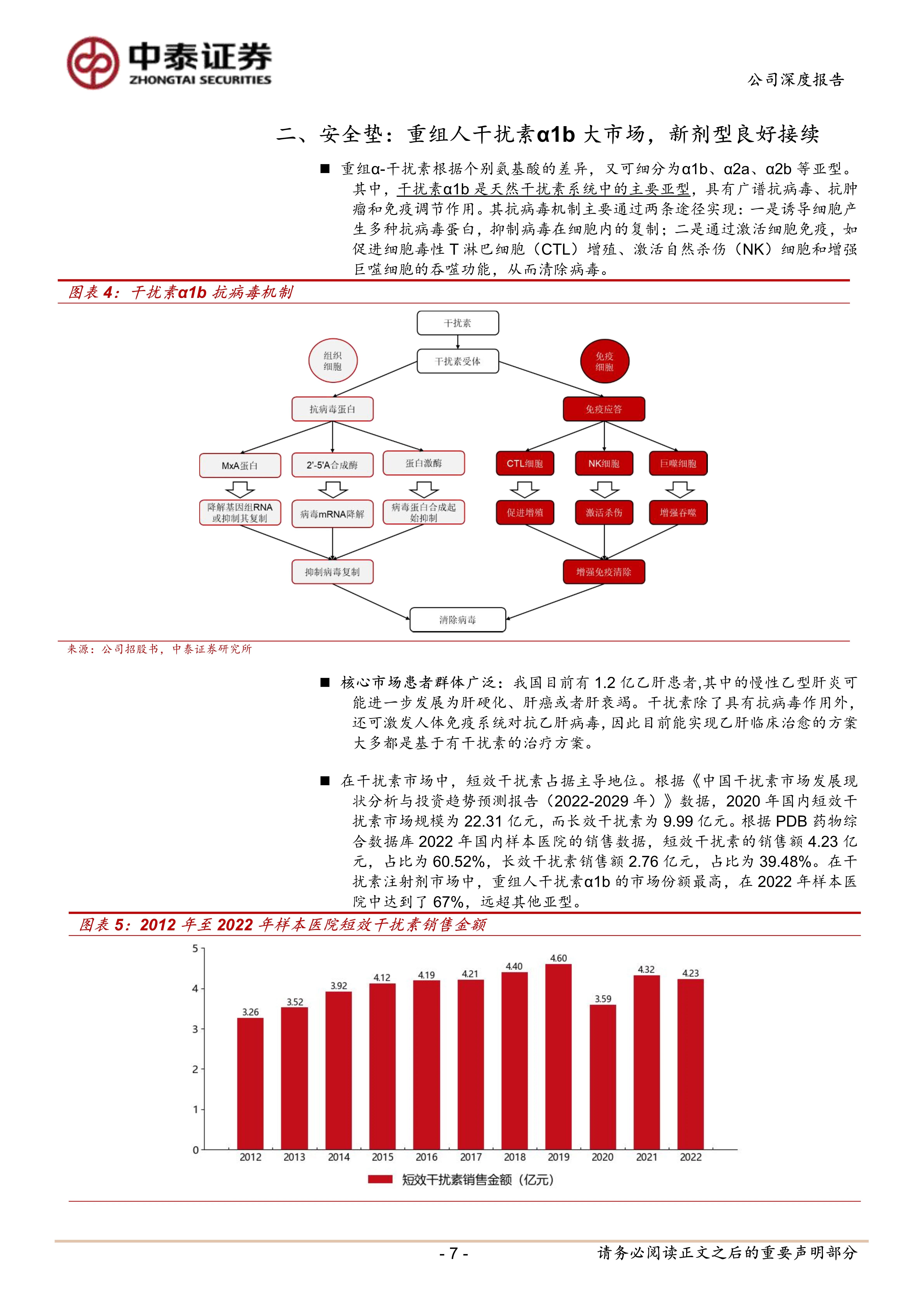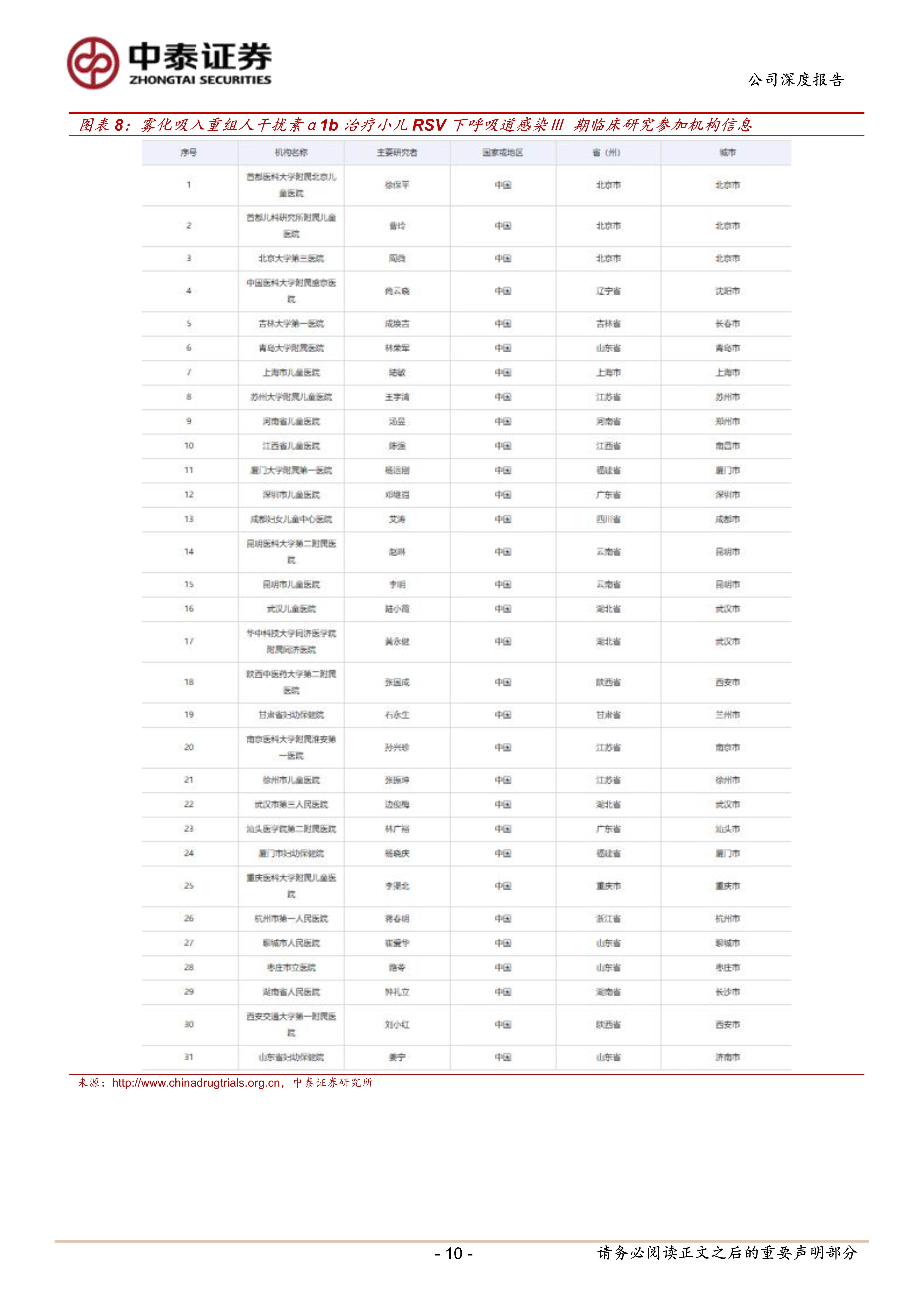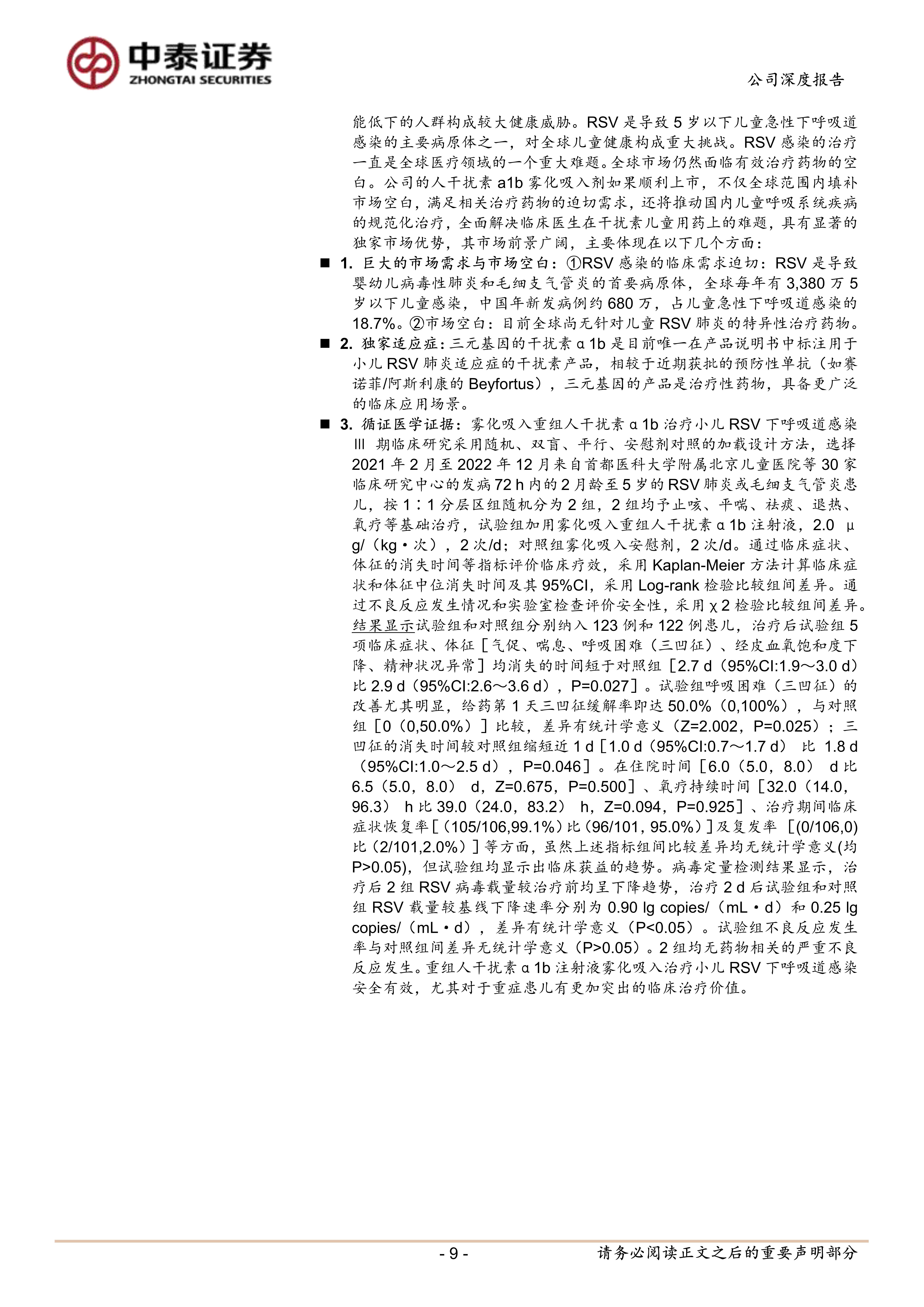 安全墊:重組人干擾素α1b大市場(chǎng),新劑型良好接續(xù)。公司通過(guò)建立重組蛋白高穩(wěn)定性水溶液技術(shù)平臺(tái),成功開(kāi)發(fā)了干擾素等細(xì)胞因子藥物的水針劑、噴霧劑、滴眼液、預(yù)充式注射劑、卡式筆多劑量注射劑、微針、霧化吸入劑等產(chǎn)品。已上市的運(yùn)德素®傳統(tǒng)劑型放量良好,在研核心產(chǎn)品人干擾素α1b霧化吸入劑針對(duì)小兒呼吸道合胞病毒(RSV)肺炎上市在即,市場(chǎng)潛力巨大。該藥物若獲批,將成為國(guó)內(nèi)首個(gè)RSV霧化治療藥物,填補(bǔ)市場(chǎng)空白。