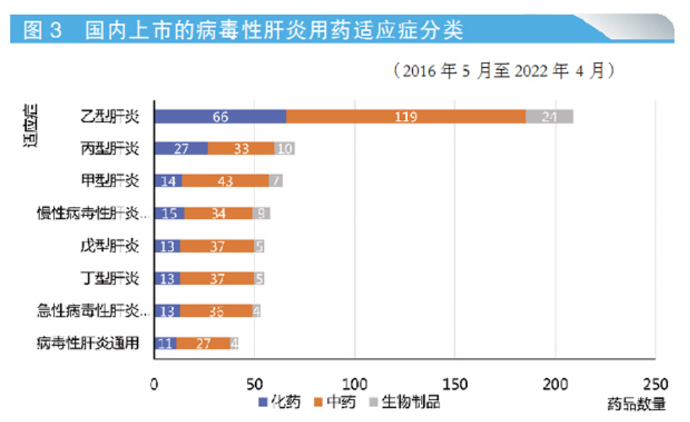 此外,乙肝以外的其他病毒性肝炎分型可用藥物數(shù)量過(guò)少,無(wú)法滿(mǎn)足龐大患者群的用藥選擇多樣化需求,需要引起藥品制造商及藥品審查相關(guān)單位的高度重視。