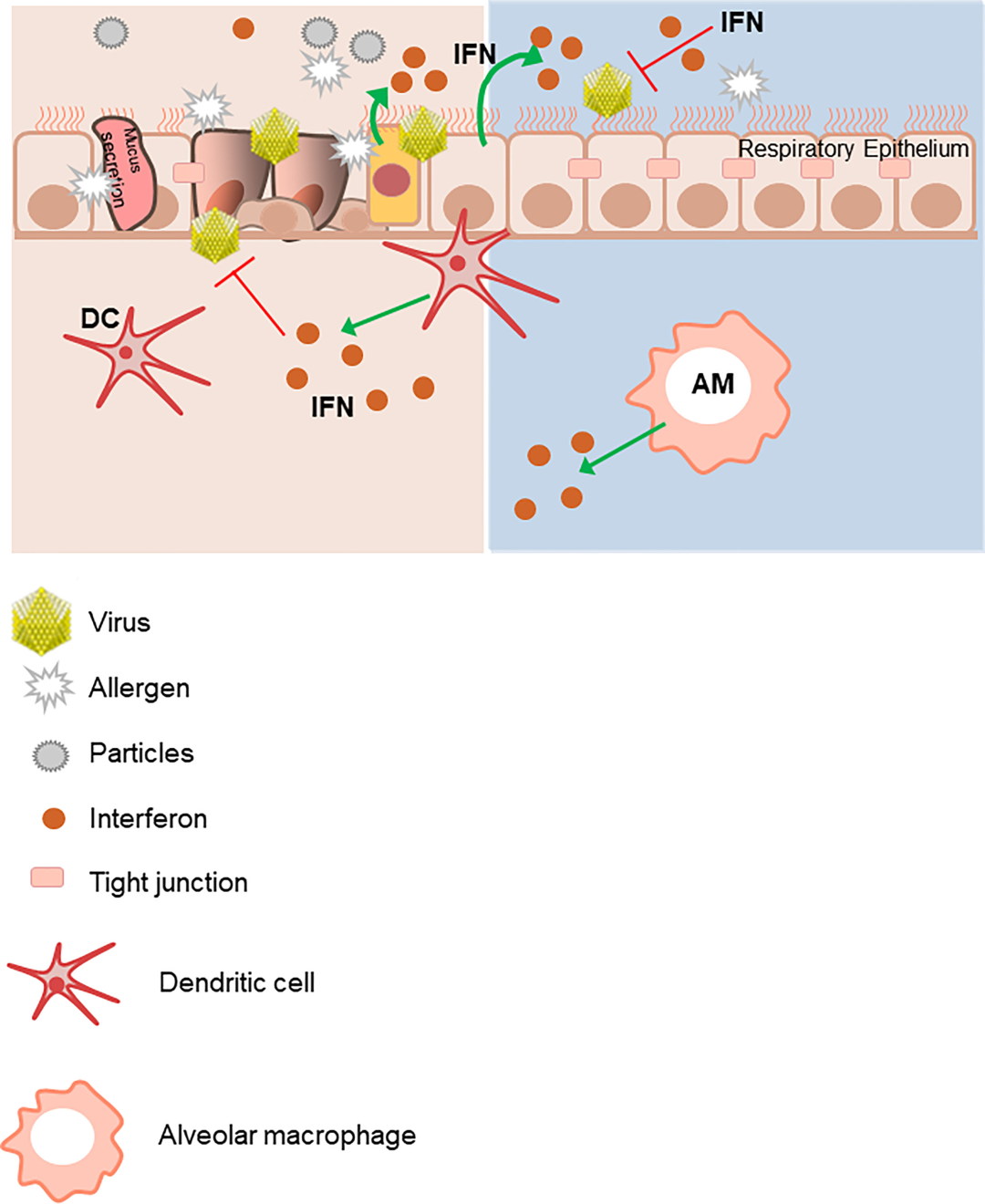 干擾素(IFN)在介導(dǎo)早期抗病毒反應(yīng)中起著重要作用,尤其是 I 型(IFN-α/β)和 III 型(IFN-λs)IFN,受損的 IFN 反應(yīng)可能在哮喘的發(fā)展中起著重要作用。小鼠敲除模型證明了 IFN-α/β 在控制病毒復(fù)制中的重要性,IFN-λs 研究報(bào)告表明,它們可抑制病毒復(fù)制和過(guò)敏性氣道炎癥。