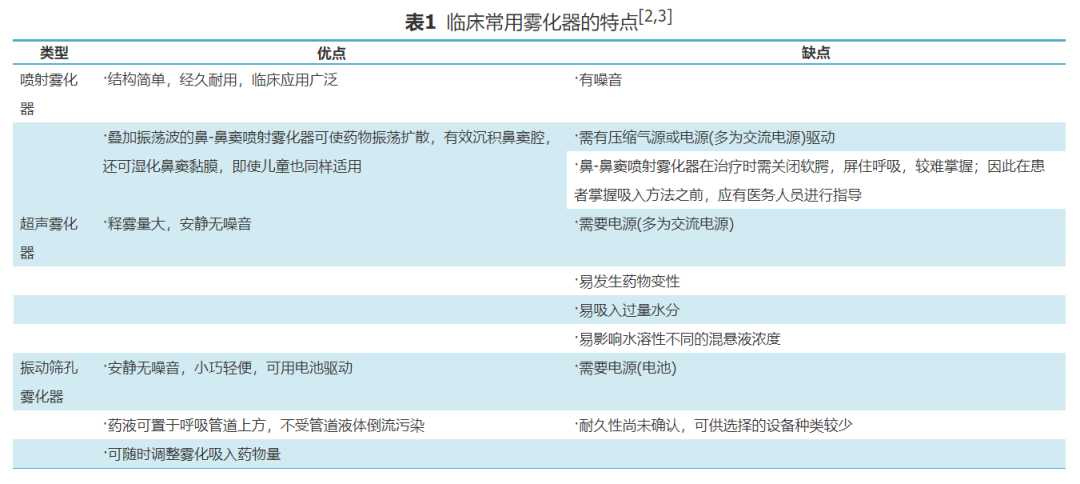 目前臨床上常用的霧化器主要有噴射霧化器、超聲霧化器及振動篩孔霧化器三種。