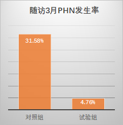 2021年發(fā)表的人干擾素α1b聯(lián)合伐昔洛韋治療急性帶狀皰疹患者的最新研究中顯示,納入60例急性期帶狀皰疹患者按1:1分組,基礎治療兩組相同,均給予適量維生素 B1和維生素 B12,鹽酸伐昔洛韋口服 0.3 g/ 次,每天2次,除此之外試驗組聯(lián)合干擾素α1b(運德素) , 10 μg/ 次,每天1次肌肉注射,療程均為10天。與對照組相比,干擾素α1b治療后VAS 評分顯著降低,隨訪3個月時PHN的發(fā)生率僅為4.76%。(見下圖)